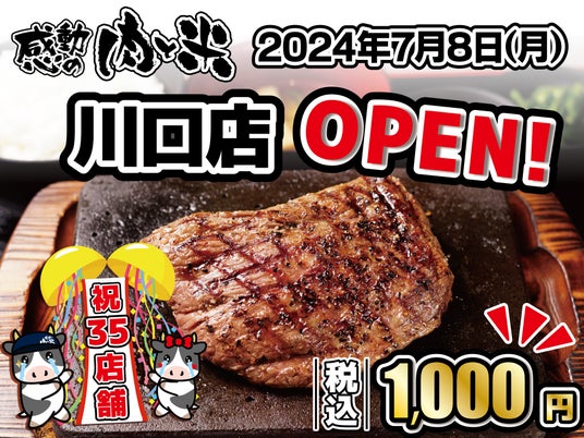 7月8日(月)11:00~『感動の肉と米 川口店』がOPENいたしました!続々と新店舗を増やしている感動の肉と米。全国で35店舗目の展開になります。※スエヒロ レストラン川口店跡地です