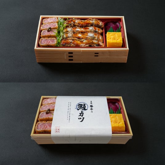 「贅の極み 鰻牛カツ重」牛カツと鰻カツを一度に楽しめる贅沢なお重です。