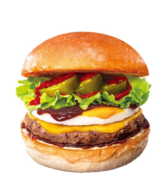 商品概要:「ロコモコ絶品チーズバーガー」にピリッとした辛味が特長のハラペーニョと特製旨辛ソースを加えた一品です。スパイシーな風味を加えることで、牛肉の旨みやデミグラスソースの甘みが際立ち、奥行きのある味わいをお楽しみいただけます。