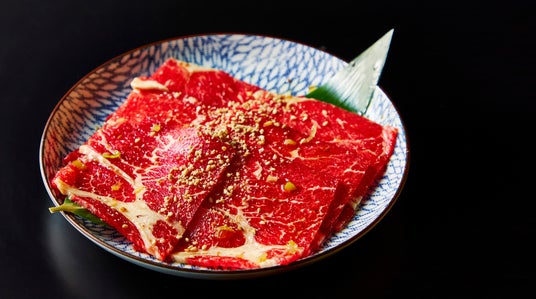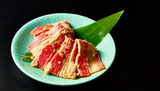 焼肉のどごしカルビすだくの近江米専用カルビはお米に巻きやすい厚さを徹底的に研究しました。焼肉すだく代々引き継がれてきた、賄いランキングNo.1。