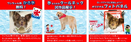 「ロックアイス(R)」フォトパネルで、かわいい「うちの子ロックアイス」の写真を撮影できます。S/M/Lの3サイズあり、大きいワンちゃんでも撮影可能です。ロックアイス公式Instagramでのキャンペーンも開催します。