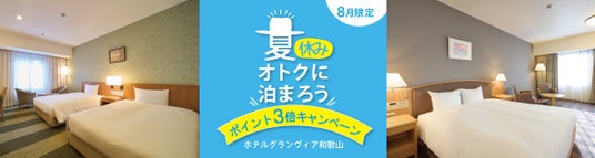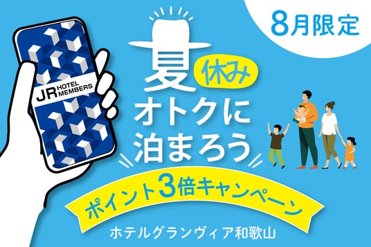 和歌山ターミナルビル株式会社(和歌山市友田町、代表取締役社長:武田 雅夫)が運営するホテルグランヴィア和歌山は、宿泊時にJRホテルメンバーズのポイント付与が3倍になる「JRホテルメンバーズ ポイント3倍キャンペーン」を2024年8月1日(木)から8月31日(土)の1か月間開催いたします。