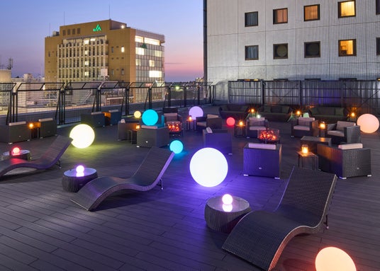 ROOF TOP~Relaxing Terrace~「ライトアップが幻想的で綺麗」とお客様からのお声をいただくご宿泊者様専用テラス。心地よい空間でゆったりとしたひとときをお過ごしください。