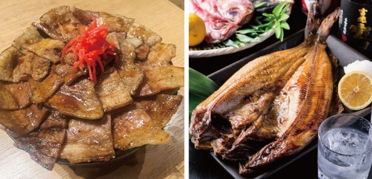 「函館炉端焼き しげぞう」限定の看板メニュー「函館名物 豚丼」は、北海道函館が発祥の本場の豚丼。サイズもS~LLまでご用意しておりますので、お子さまからがっつり食べたい大人の方まで幅広くお召し上がりいただけます。その他にも「知床鶏モモ焼き」や「北海道名物ザンギ」などご当地グルメも多数ご用意。北海道の地酒とご一緒にぜひ、お楽しみください。