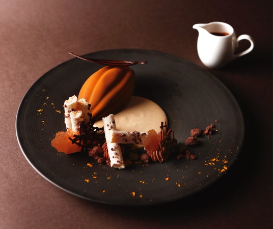 お好みでナッティな風味のチョコレートソース、コーヒーのホワイトソース、オレンジのシャンティショコラを合わせて。