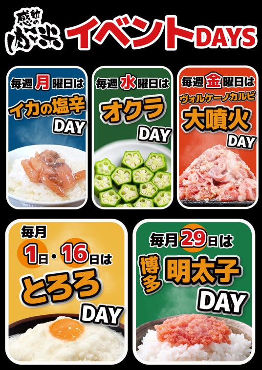 また、毎月1・16・29日は最強のご飯のお供が登場します。