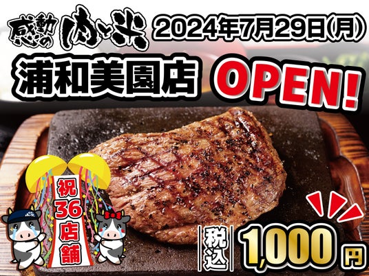 7月29日(月)11:00~『感動の肉と米 浦和美園店』がOPENいたしました!続々と新店舗を増やしている感動の肉と米。全国で36店舗目の展開になります。※スエヒロ レストラン浦和美園店跡地です