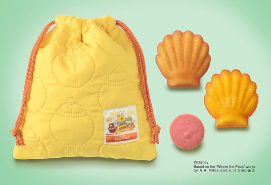 特長:「はち(8)みつ(3)の日」にちなんだ、はちみつのやさしい甘みとレモン、オレンジそれぞれの爽やかな味わいが楽しめる2種類のマドレーヌ。甘ずっぱいフランボワーズのクッキーも一緒にアソートしました。マドレーヌの個包装フィルムには、みつばち姿がかわいい「くまのプーさん」をデザインしました。はちみつをイメージした黄色の巾着は、プーさんのタグやつぼ型のステッチ付きで、アフターユースにもおすすめのかわいらしさです。