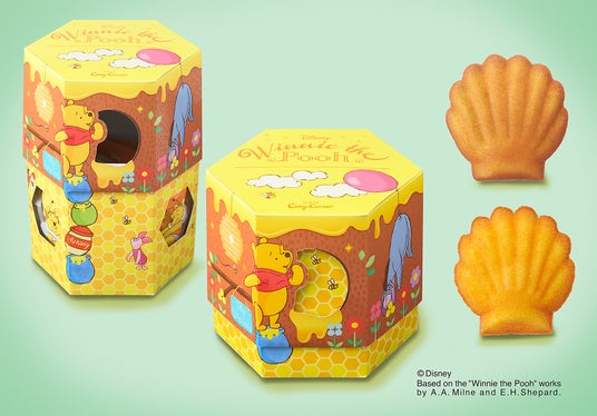 特長:みつばち姿がかわいい「くまのプーさん」の個包装フィルムデザインが心をなごませる、季節限定のマドレーヌです。プーさんの大好きな“はちみつ”を使用して、ふんわり、しっとり風味豊かに焼き上げました。はちみつのやさしい甘みと、レモンの爽やかな味わいと香りをお楽しみください。