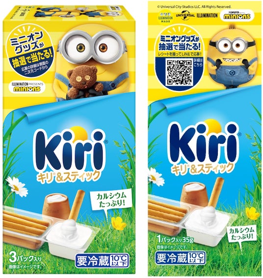 豊かな自然の中で育てられた牛から採れる新鮮なミルクと生クリームの厳選素材から生まれた「キリ クリーミーポーション」は、子供から大人まで多くの方々に親しまれています。このたび、ユニバーサルの大人気映画「怪盗グルー/ミニオンズ」シリーズの最新作『怪盗グルーのミニオン超変身』の7月19日(金)の公開に合わせ、初めてコラボレーションし、「キリ」全8商品にミニオンの人気キャラクターが登場する限定パッケージを数量限定で発売いたします。