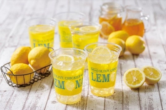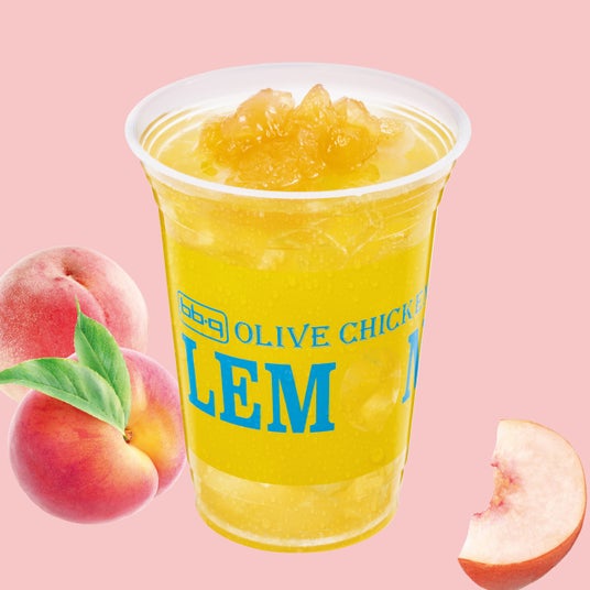 『オリーブチキンカフェ』で定番の、毎日お店で絞る新鮮レモン果汁と、皮のほろ苦さが溶け込んだコンポートをミックスした自家製手作りレモネードに、100%甘蔗糖(サトウキビ)のノンコレスレロールMade in FRANCEの自然派シロップ「1883 メゾンルータン」ピーチフレーバーを使用し、さらに国産白桃シロップを味のバランスよくトッピングした、すっきりとした甘さのドリンクです。