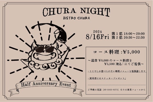 その記念として、8月16日(金)に日頃の感謝を込めて特別イベント『CHURA NIGHT(ちゅら ないと)』を開催します。