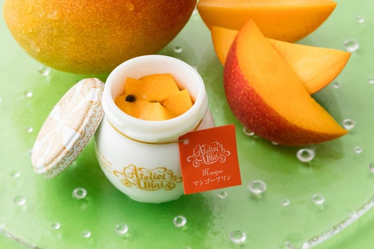手のひらに寄り添う、ころんと丸い瓶に素材の味わいがぎゅっと詰まったプリン。角切りのフレッシュマンゴーをたっぷりと乗せた贅沢な味わいが魅力。ココナッツやマンゴーパッションソースと一緒に、南国の香り漂う、夏にぴったりの美味しさをぜひお楽しみください。