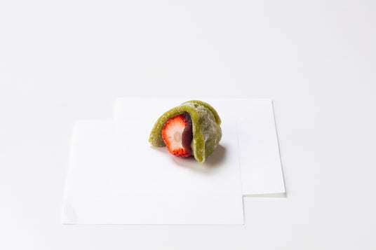 ■苺 strawberry抹茶を練り込んだ皮は抹茶が程よく香り、苺のヘタの緑を感じさせる見た目も美しい一品です。