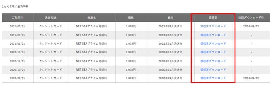 バイヤー会員向けオプションサービス「NETSEA プライム」の月額費において、これまで領収書発行する際、ネッシーサポート宛てにご連絡いただいておりましたが、今回の機能改善により、バイヤーマイページから領収書発行・ダウンロードができるようになりました。