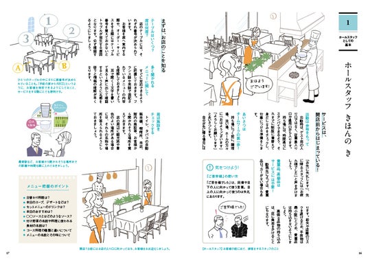 ▲『イラストで見る 接客の基本とコツ カフェ・レストラン…テーブルサービスの教科書 増補改訂版』
