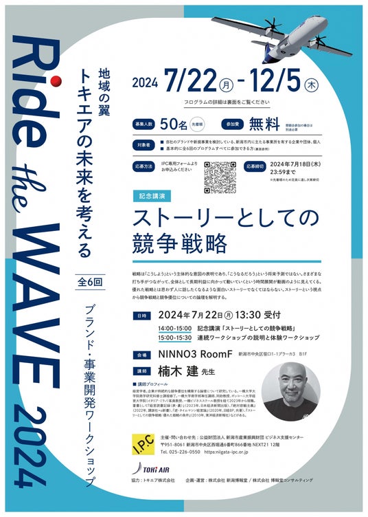 新潟市外郭団体の新潟IPC財団ビジネス支援センターでは、7月より「ブランド・事業開発のための連続ワークショップ "Ride the WAVE"」を開始いたします。