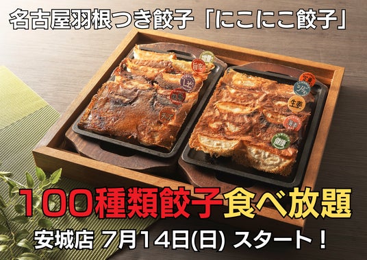 有限会社アイズ(本社:愛知県知立市、代表取締役:岩瀬充昇)が運営する「名古屋羽根付き餃子にこにこ餃子」は、10種類の餃子と10種類のつけタレで100通りの餃子を食べ放題で楽しめる「100種類餃子食べ放題」を2024年7月14日(日)より安城店にて開始します。