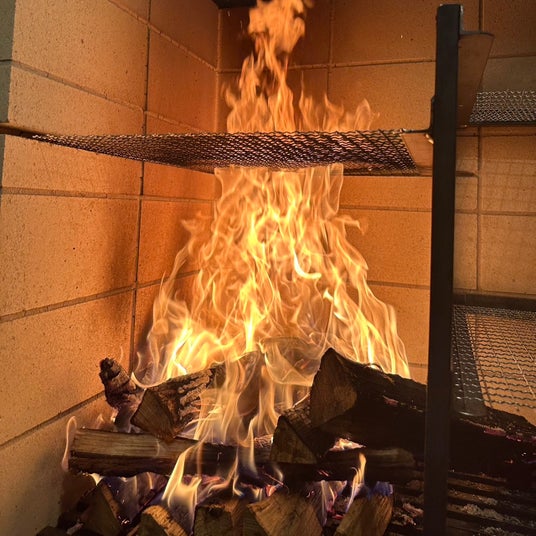 薪焼きの特徴薪の火は非常に高温になるため、外側をカリッと焼き上げることができます。そのため、肉や魚の表面を香ばしく、中はジューシーに仕上げることができます。他にも薪が燃える際に出る煙や香りが食材に移り、特有のスモーキーな風味が楽しめます。
