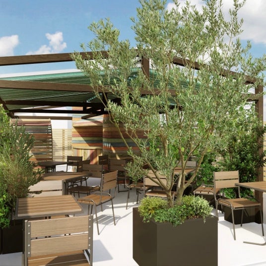 店内は古民家的な雰囲気で、カウンター・テーブル・個室があります。屋上には広いテラス席があり、オリーブの木や植物が沢山あるためオフィス街ということを忘れてしまいます。