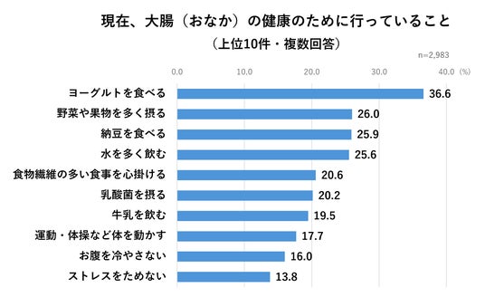 1位「ヨーグルトを食べる」、2位「野菜や果物を多く摂る」、3位「納豆を食べる」