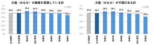 大腸(おなか)の健康を意識している人は2人に1人。1位は奈良県、最下位は大阪府。