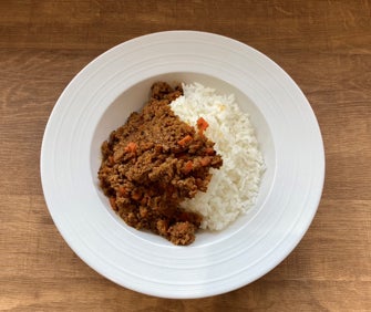 タマネギぐるりこキーマカレー『タマネギぐるりこ』の香りとスパイスの効いたカレーです。芳醇な香りの『タマネギぐるりこ』を炒めタマネギのかわりに使用。タマネギの甘みと香りが引き立っています。生のタマネギを刻み、じっくりと炒める工程を省くことで、時短調理になりました。