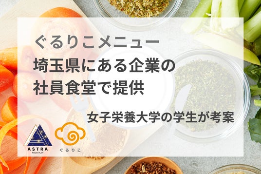 「サスティナブルな社会の実現」をミッションに掲げるフードテックベンチャーのASTRA FOOD PLAN 株式会社(埼玉県富士見市、代表取締役社長:加納 千裕 以下ASTRA FOOD PLAN)は、2024年7月11日から14日に、社員食堂や学生食堂を運営する勤労食(愛知県刈谷市、代表取締役社長:濱崎浩子)が展開する埼玉県の企業の社員食堂で、女子栄養大学の食文化栄養学科の学生が考案した『タマネギぐるりこ』を使用した4種類のメニューが提供されることをお知らせいたします。