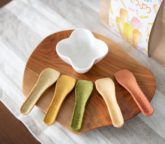 食べられるスプーン「PACOON」(パクーン)PACOONは、食育と環境問題への想いから生まれた商品です。スプーン型のクッキーで、プラごみ削減につながるエコ商品として注目されています。ビーツやかぼちゃなどの国産野菜を使ったフレーバーであることも大きな特徴で、食育にも活用されています。