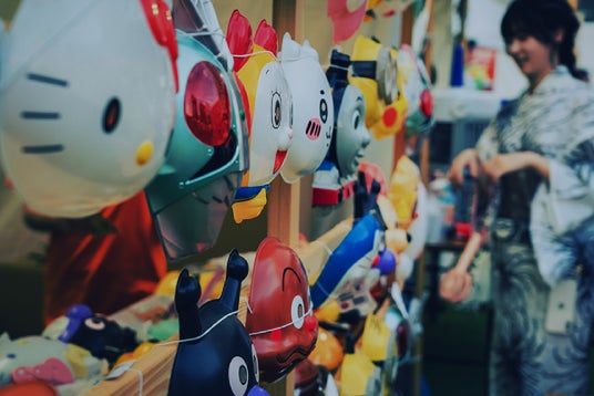 非日常感を楽しむ祭りには欠かせない小道具のお面。お気に入りをつけて盆踊りに参加しよう!
