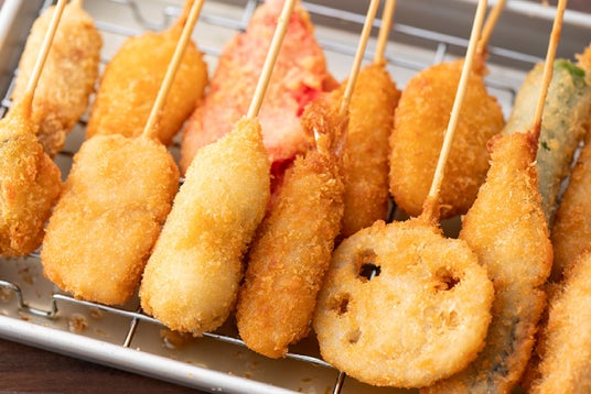 さまざまな串を楽しめるバラエティーセットもアリ、ジューシーな串カツをご賞味ください。