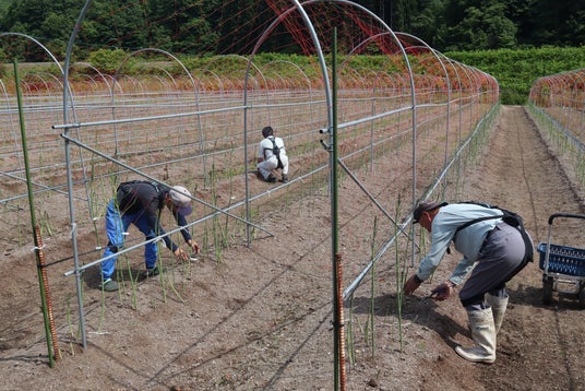 2004年に産地化に向けて栽培を始めて以降、現在では山形県内一の生産量を誇り、出荷量も400トンを超えるほど急成長中の最上町のアスパラガス。また、主力ブランド「達者de菜」を全国に約176トン出荷するニラも主要産業です。しかしながら常に付きまとうのは、農業従事者減少による担い手不足です。農業の倒産は2年連続で最多を更新し、基幹的農業従事者数人口は2005年時点では224.1万人いたところ、2023年の推概数値では約半分の116.4万人まで減少しています※3。