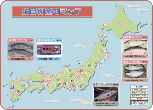 北海道から九州まで日本全国のサーモン養殖産地を網羅