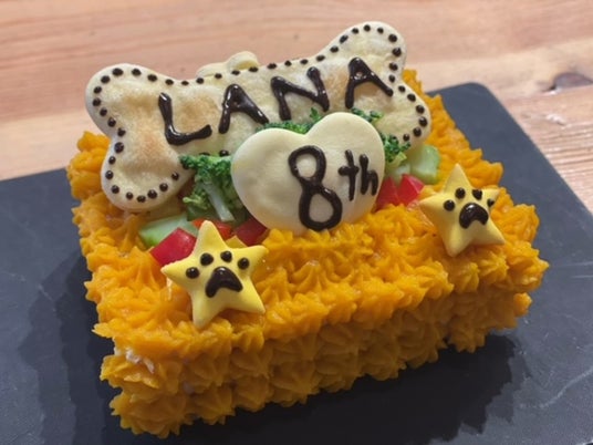 本プランはお祝いにかかせないケーキ(犬用)が付いた 1 泊 2 食付の宿泊プランです。ケーキの味は 3 種類(チキン味、犬用ハンバーグ味、バナナ味)から選ぶことができ、ケーキプレートには愛犬のお名前を入れる事ができます。