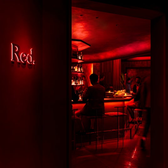地下1階にあるナイトラウンジ「Bar Red.」(バー レッド)。“大人の遊び場”をコンセプトとした、レッドとブラックで統一されたシックでモダンな空間では、200種類のジンが楽しめる。ビリヤードやカラオケも完備。