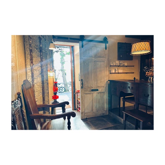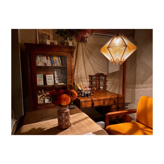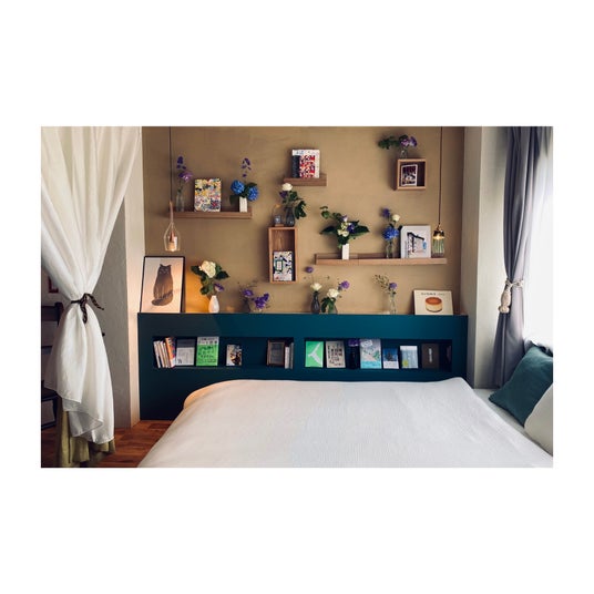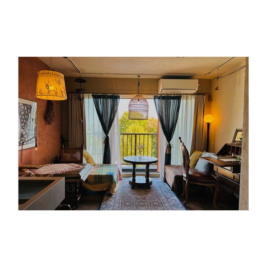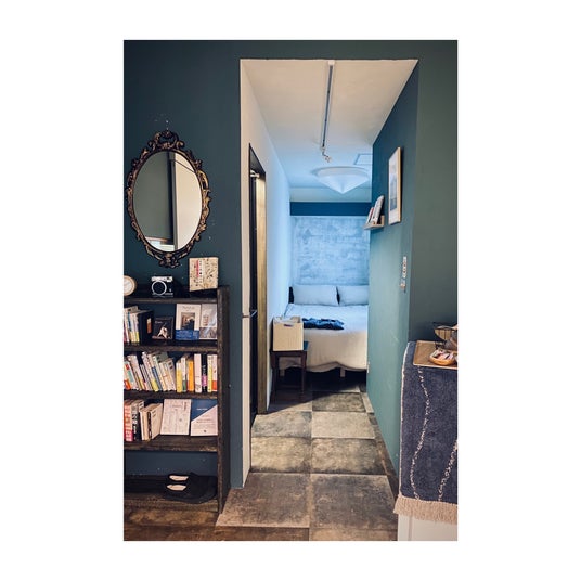 リビングと寝室を緩やかに区画したゆとりのある空間を、世界中から集めたヴィンテージの家具・雑貨や、アート・インテリア・暮らしを中心とした本や雑誌で包み込み、穏やかな時間を演出しています。