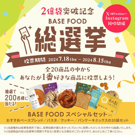□特典:抽選で200名様にBASE FOODスペシャルセット(20袋入)をプレセント