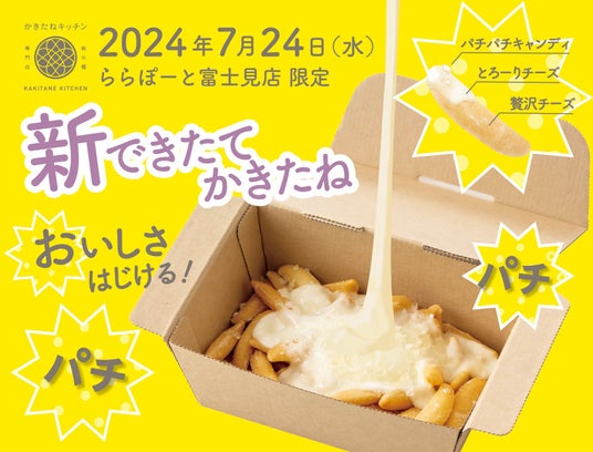 とよす株式会社(本社:大阪府池田市 社長:眞田 昌彦)は、百貨店を中心に展開しているブランド「かきたねキッチン」ららぽーと富士見店において、『できたてかきたね 弾けるチーズ』『できたてかきたね 焦がししょうゆ』『できたてかきたね 焦がしチーズ』を2024年7月24日(水)から発売いたします。