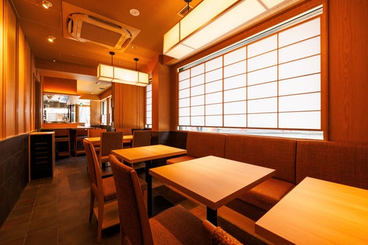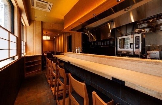 内装は、うなぎ料理の店舗に相応しく“うなぎの寝床”を彷彿とさせる奥行きあるつくりとなっており、目の前でうなぎを燻すライブ感溢れるカウンター席の他、店舗奥にはテーブル席もご用意。障子から差し込む光と落ち着いた木目調の内装が、都会の喧騒を忘れるひと時をご提供いたします。また、焼き場は通りに面しており、薪の火でうなぎを燻す様子を店舗外からご覧いただけます。