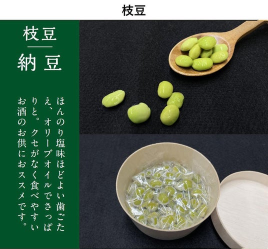 ”枝豆納豆”や”ピスタチオ納豆”は塩やオリーブオイルをかけて、おつまみ感覚でお楽しみいただくのがオススメです。オリーブオイルの爽やかな香りと塩が枝豆の甘さ、ピスタチオの濃厚な風味をよりいっそう引き立てます。ぜひ色んな食べ方を試してお楽しみください。