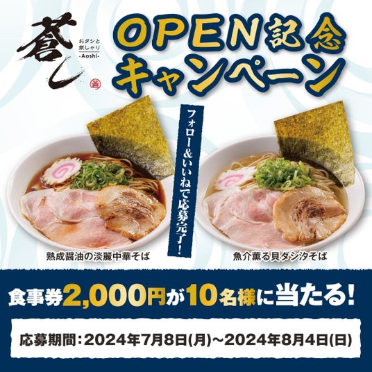 『おダシと銀しゃり 中華そば 蒼し』(住所:奈良県大和高田市)を2024年7月18日(木)にオープン致します。