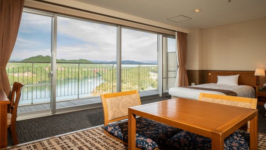 景勝地・恵那峡を望む高台に位置し、すべての客室から窓一面に広がる恵那峡の大パノラマをお愉しみいただけます。天然温泉や、旬の食材を取り入れた会席料理とともに開放的なひと時をお過ごしください。