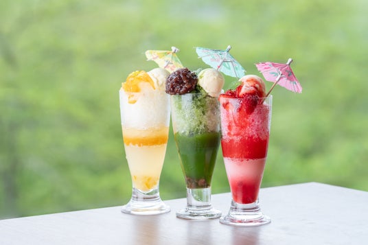 館内の喫茶にて、かき氷フェアを実施。ゆず、抹茶、いちごの3種類をご用意しています。各700円(税込み)。フェア開催期間:2024年7月13日~8月31日、喫茶営業時間:11:00~17:00。