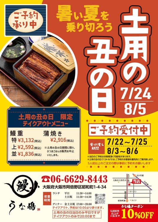 土用の丑の日に注文いただいたお客様に、次回使える500円引きクーポン券をお渡しする予定だ。