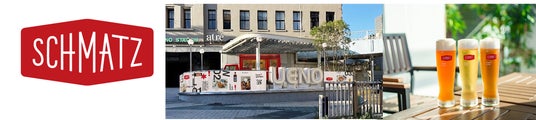 「シュマッツ・マイクロ・ビアガーデン」では、ドイツのビール純粋令を守って作られたオリジナルクラフトビールが楽しめます。香り爽やかな「IPA」や、華やかで香りがフルーティな「ヴァイツェン」などシュマッツの定番はもちろん、本ビアガーデン限定の「Schmatzビール飲み比べ」もご用意しています。ビアカクテルなどの様々な種類のドリンクに加え、オリジナルソーセージを使用した限定の「ホットドック」やベルリン名物「カリーヴルスト」など、ビールとの相性抜群の食事メニューも豊富です。150年以上の伝統をもつブルワリーが創り出す最高品質のビールを存分にご堪能ください。