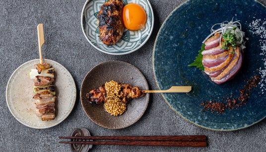 おすすめメニューは、焼鳥7串や〆には3種の鶏を8時間かけて抽出したスープで炊いた土鍋ごはんなど13品を¥5,940(税込)で味わえる「おまかせコーススタンダード」です。串は30年継ぎ足したこだわりのタレのほか、焼鳥のタレをフレンチのジュのソースに仕立てた串やスパイス、マスタードなどを使うなど、和にとらわれずイタリアンなどの要素も取り入れたバリエーション豊かな焼鳥をお召し上がりいただけます。串の他には、人気の地鶏と京鴨ロースのたたきなどブランドの看板メニューをラインナップ。コースの焼鳥との相性を考えて厳選したワイン、日本酒、スパークリングワインの5杯を楽しめる「ペアリングセット (¥3,850)」や「飲み放題 (¥3,520)」オプションも取り揃えています。