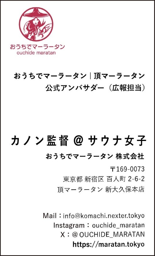 SNSマーケティング事業を行う ネクスター株式会社(本社:東京都 新宿区、代表取締役社長CEO:細田悠巨)のグループ会社である、D2Cブランド事業を行う おうちでマーラータン株式会社(本社:東京都 新宿区、共同代表 齋藤悠)が運営するD2Cブランド『おうちでマーラータン』( https://maratan.tokyo )は、新大久保に本店を構える『 頂マーラータン 新大久保 本店 』の味をおうちで簡単に味わえるようにした冷凍マーラータンのヘルシーD2Cブランドです。その公式アンバサダー(広報担当)として、カノン監督@サウナ女子が就任し、ネクスター・オフィシャル・パートナーシップ契約を締結しましたことをこちらにお知らせいたします。