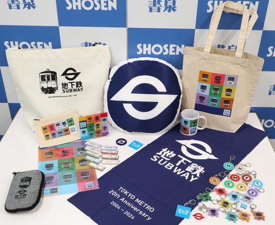 書泉グランデ5階(神保町)、書泉ブックタワー5階(秋葉原)の鉄道フロア、芳林堂書店みずほ台店および書泉オンラインショップにて販売する東京メトロ20周年記念グッズは限定数量での販売です。