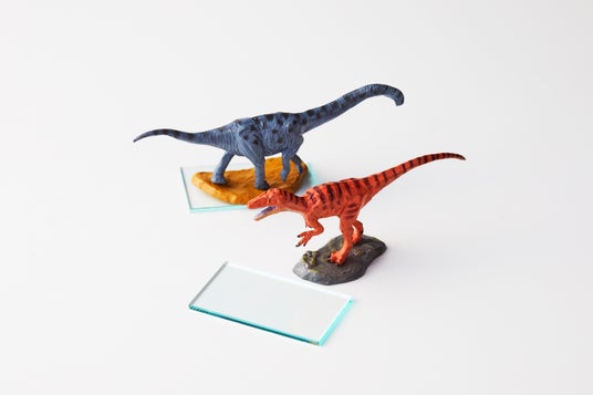 福井県立恐竜博物館が監修した付属の恐竜フィギュア・フクイラプトル(写真下)、フクイティタン(写真上)を飾ってお楽しみください。