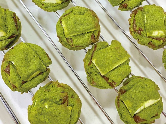 ◇米粉抹茶チョコレートクッキーミルクチョコ、ビターチョコ、ホワイトチョコを三層に重ねて焼き上げた、しっとりホロホロ米粉抹茶クッキーです。大原の平飼い飼育で育った大原山田農園の美味しい濃厚な卵を使用しています。テムザックの米粉「ミズホチカラ」を使用したコラボ商品です。チョコレートと抹茶の香りがあふれ出す、なめらかな舌触りをお楽しみください。